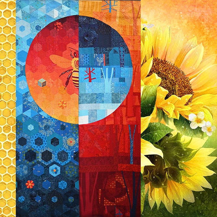 I have set it against a yellow Sunflower and Honeycomb backdrop. This email is a tribute to my friend Jane S. who I have known for many years through the Color Marketing Group. She lived in Hong Kong working in the design business, as I did. Her specialty over time became silk flowers, and she always looked forward to the Chelsea Flower Show each Spring in London. She has been bugging me to come spend time at her home in Sydney Australia, but I learned a few days ago that we lost her to a sudden illness. Jane loved Bees and Flowers, and she was a champion for the bees and other pollinators in the garden. We shared a love of quilts and beautiful fabrics, flowers and bees.