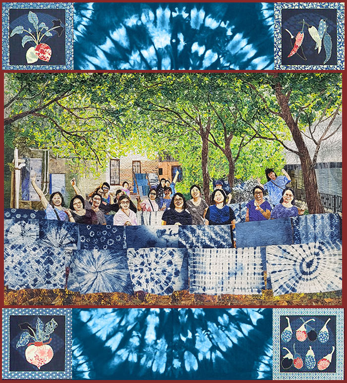 This party quilt was made by Taiwanese artist Hsu Hsi-Chen, and was part of the ‘Celebration of Color’ exhibit that eQuilter sponsored at the Houston Quilt Festival. This quilt depicts a “Dyeing Party” which is why you can see everyone in the image is smiling, and it makes me smile too!