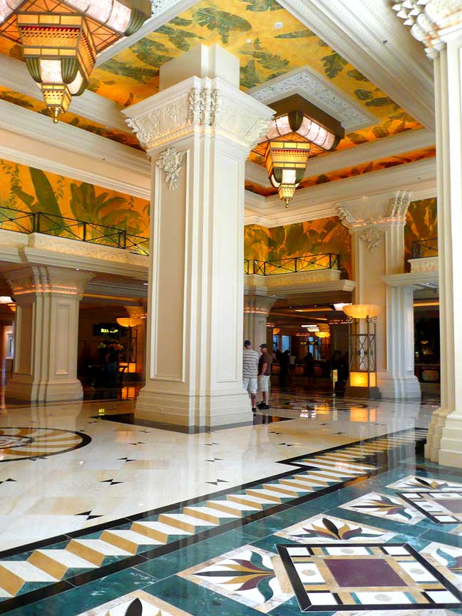 I am not a gambler, but in this case I couldn't fail to notice that this is Art for the People, paid for (albeit indirectly) by the People. Yes there are ultra wealthy people who own these monuments to gambling wealth, but you and I can walk through the lobby and the public areas in and around the property (don't forget the amazing gardens and waterfalls out front!) and enjoy the designers' and artisans' work for free. With the water issues, who knows what Vegas will be in a hundred years? – but if you keep your eyes on the surroundings instead of the slot machines – you just might find an inspiration there for your next project! (see photos on my photo page)