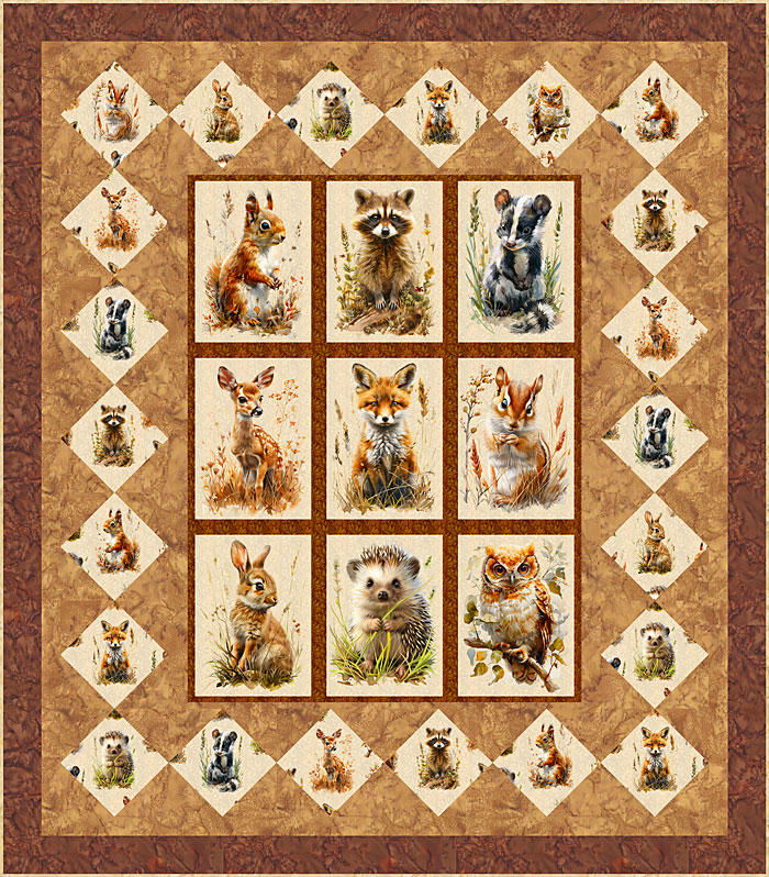 Tonight’s Free Quilt Pattern features an adorable assortment of woodland baby animals across a wild and whimsical background.