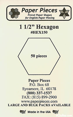 Love your hexie quilts and appliqués but hate cutting out those paper pieces? These great little templates come to the rescue - with 100 precut paper pieces in a great size, and instructions included, even the novice can get stitching quickly! 50 piece 1 1/2" paper hexagons by Paper Pieces.