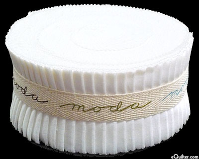 Cleverly rolled up, ready to be made into your next amazing quilt, used as bindings, sashing, or separately in lots of different projects, these strips of crisp white color will help to showcase your most gorgeous prints and patterns. 'Bella Solids' Jelly Roll from Moda Fabrics, includes 40 strips, each strip is 2 1/2" x 45".