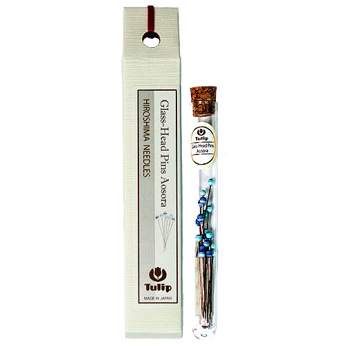 These high-quality Japanese pins are a product of true attention to detail. The nickel plated steel pins are polished lengthwise to ensure smooth fabric piercing, and the pink and lavender glass ball heads won't melt when ironed. At 0.5 mm thick and 35 mm long, these pins are great for tacking thin fabric or for detailed work. Aosora Glass-Head Pins, 20 pieces, by Hiroshima from Tulip Corporation of Japan.