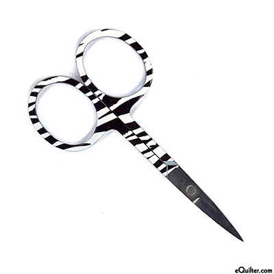 Cut and clip in style with these too cute embroidery scissors. The large handles make these scissors comfortable and the tapered tip makes them precise, but it is the fun patterns that are irresistible! 3-1/2" embroidery scissors, handles adorned with zebra print.