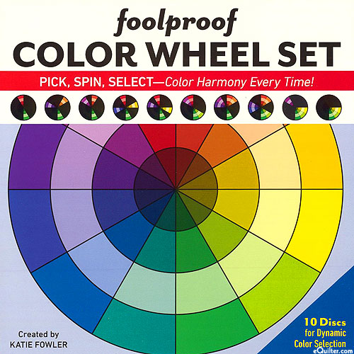 Pick, spin, and select color harmony every time with this foolproof color wheel set. Includes 8" color wheel with 12 colors featuring tints, tones, and shades and then die-cut color combination discs. 'Foolproof Color Wheel Set' by Katie Fowler, published by C&T Publishing, includes 8" color wheel with 12 colors featuring tints, tones, and shades, and 10 die-cut color combination discs.