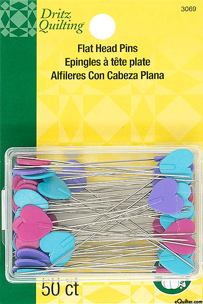 These extra-long pins have easy-to-handle flat heart heads and are perfect for taking on multiple layers. A Stack-N-Whack quilter's dream. Flat Head Pins, 50 count, by Dritz Quilting.