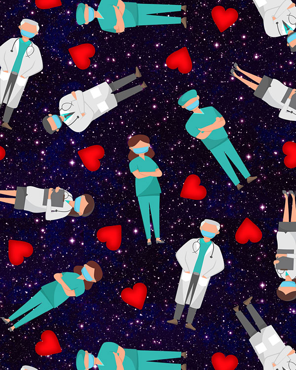 Bright hearts express thanks and gratitude to the doctors and nurses who are always there to help. Digitally printed, nurses and doctors are about 2-1/2" tall, by the Rubin Design Studio, 'Medical Stars Allover' designed exclusively for eQuilter.