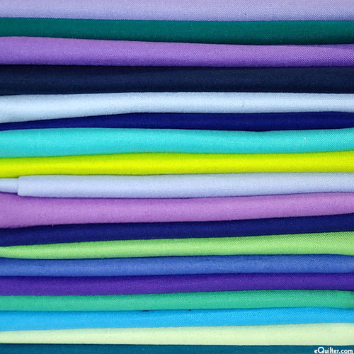 eQuilter's Scrap Packs are bolt ends from about 9” wide to 17” wide (average 12” wide), carefully sorted by color and/or theme, and assembled into a one pound package. This is a fantastic way to enhance the variety of your stash with quality fabrics – a delightful surprise in every packet! One pound is about 2 to 2 1/2 yards of total fabric. Enter quantity of 1-pound packages you would like to purchase in the quantity box. Fabrics are folded, stacked and tied with a fabric ribbon – great for gifts and door prizes. All sales are FINAL, no exceptions. PLEASE NOTE: Shipping price is based on weight, not price. One pound packet of *assorted* Kaufman Kona and some other Solid scraps.