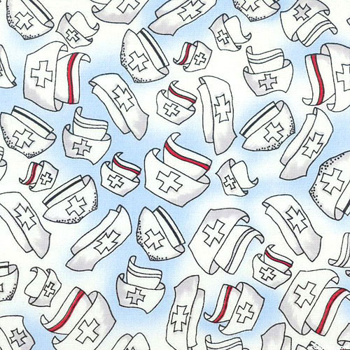 A profusion of nurses hats tumbles over a solid ground in this nifty companion print to the rest of this whimsical collection. Perfect for your creative projects saluting our hard working, and stylish, medical professionals! Larger hats are about 1", 'Happy Hats' from the 'Nifty Nurses' collection by Loralie Harris for Loralie Designs.
