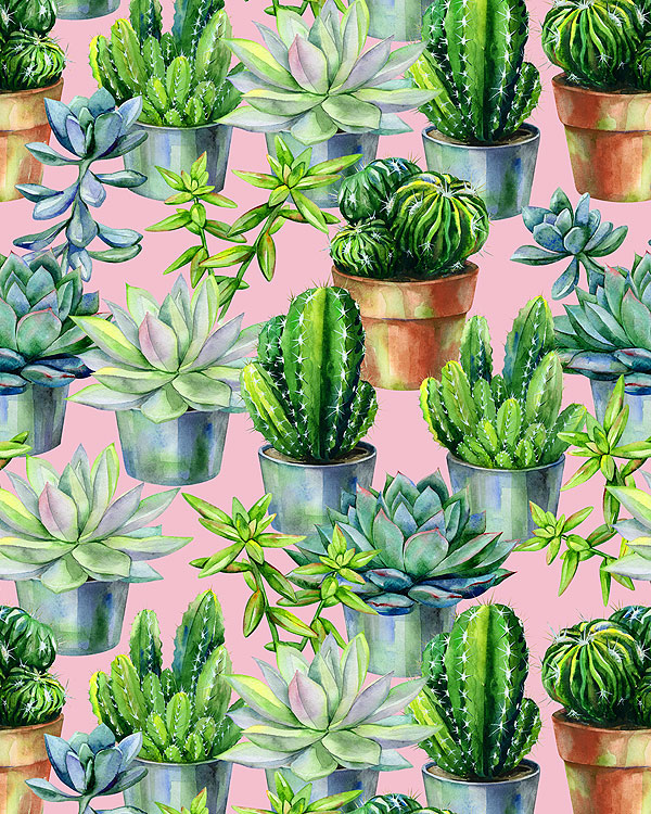 Digitally printed, cactus plants are about 3-1/2", 'Fancy Cactus Garden' by the Rubin Design Studio, designed exclusively for eQuilter.