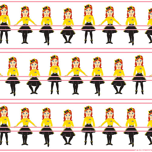 Taller figures are about 2-3/8", stripes run from selvedge to selvedge, from the 'The Wiggles - Emma!' collection, by The Wiggles Pty. Ltd. for Riley Blake Designs. Cannot be sold for manufacturing.