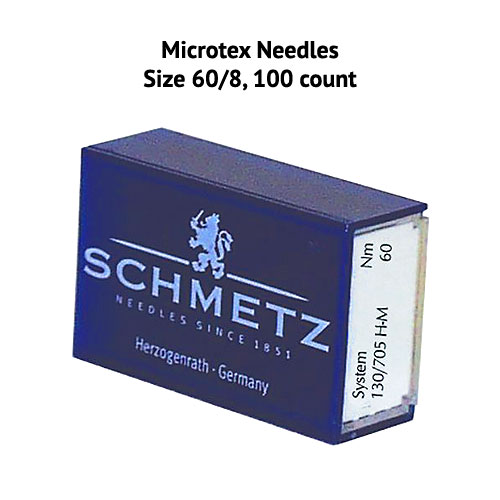 Never run out of new, sharp needles in the middle of a project again! This bulk supply of 100 authentic Schmetz Microtex Sharp Needles will keep you stitching until that quilt is finished. They have a very thin acute point that creates beautiful topstitching and perfectly straight stitches for quilt piecing when precision is paramount. Use them on micro fibers, polyester, silk, foils, artificial leather and coated materials. Microtex Sewing Machine Needles, sold in a box of 100, size 60/8, from Schmetz.