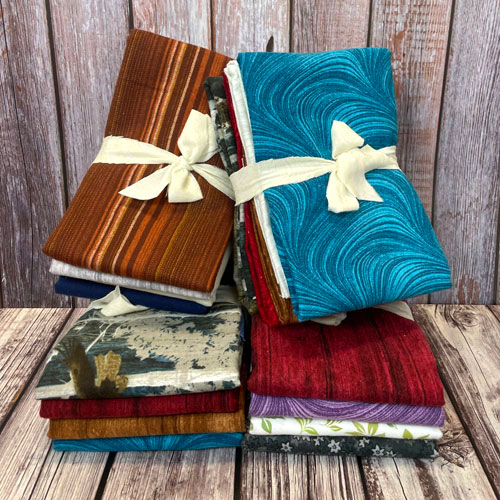 eQuilter's Scrap Packs are bolt ends from about 9” wide to 17” wide (average 11” wide), carefully sorted by color and/or theme, and assembled into a one pound package. This is a fantastic way to enhance the variety of your stash with quality fabrics – a delightful surprise in every packet! One pound is about 2 to 2 1/2 yards of total fabric. Enter quantity of 1-pound packages you would like to purchase in the quantity box. Fabrics are folded, stacked and tied with a fabric ribbon – great for gifts and door prizes. All sales are FINAL, no exceptions. PLEASE NOTE: Shipping price is based on weight, not price. One pound *assorted* packet of FLANNEL bolt ends, MIXED BLENDERS & SOLID scraps.