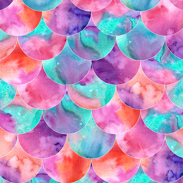 These painterly mermaid scales mimic the watercolor style, making this vibrant, colorful fabric perfect for all mermaid and multicolored projects! Digitally printed, scales are about 2-1/8", 'Watercolor Mermaid Scales' by the Rubin Design Studio, designed exclusively for eQuilter.