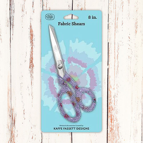 Cut through multiple layers of fabric with these sharp and stylish Fabric Shears featuring designs by Kaffe Fassett. High quality steal construction. Fabric Shears, 8", by Kaffe Fassett Designs.