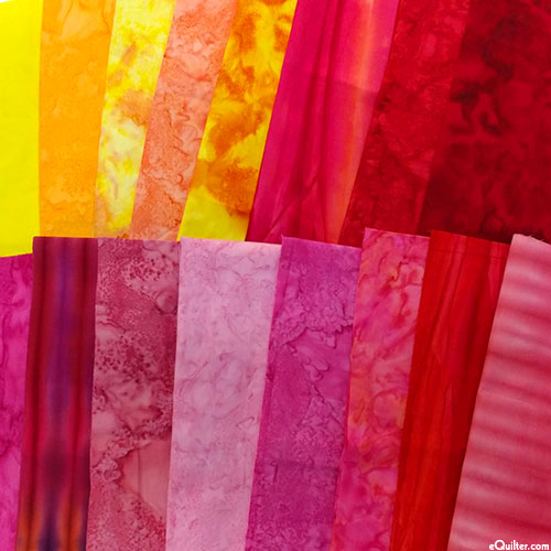 eQuilter's Scrap Packs are bolt ends from about 8” wide to 17” wide (average 11” wide), carefully sorted by color and/or theme, and assembled into a one pound package. This is a fantastic way to enhance the variety of your stash with quality fabrics – a delightful surprise in every packet! One pound is about 3 to 3 1/2 yards of total fabric. (3 one-pound packets will be 9-10 yards of fabric.) Enter quantity of 1-pound packages you would like to purchase in the quantity box. All sales are FINAL, no exceptions. Shipping price is based on weight, not price. One pound packet of *assorted* Warm Hand-Dye scraps.