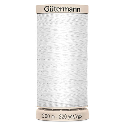 This hand quilting thread is made of 100% mercerized cotton and is a special hand thread for quilting. The waxed surface ensures smooth running and prevents wrinkles when processing by hand. Suitable for all materials and fabrics. Recommended needles (eQuilter codes): BONDL603, UNTHN89E, UNTHN03E, & UNTHN05E. Hand Quilting Thread by Gütermann, 100% cotton, 40 weight/3 ply, 220 yards, White.