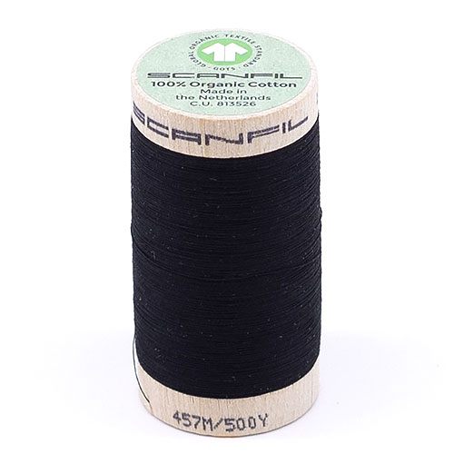 This lint-free, double mercerized 100% organic cotton thread is spun from the finest long staple Pima cotton, grown without the use of chemicals and pesticides. Each spool is wound around biodegradable wooden spool cores. Rest assured your thread is GOTS - Global Organic Textile Standards and Oeko Tex-certified. During production only natural dyes, natural lubrication and a very stringent mercerizing process are used. Perfect for quilting, top-stitching, decorative machine stitches, crafting, and embroidery and fits all standard sewing machine spindles. Recommended needle is US size 10-14. 100% Organic Extra Long Staple Pima Cotton thread, 50 wt, 500 yds, Color #4808 Jet Black.