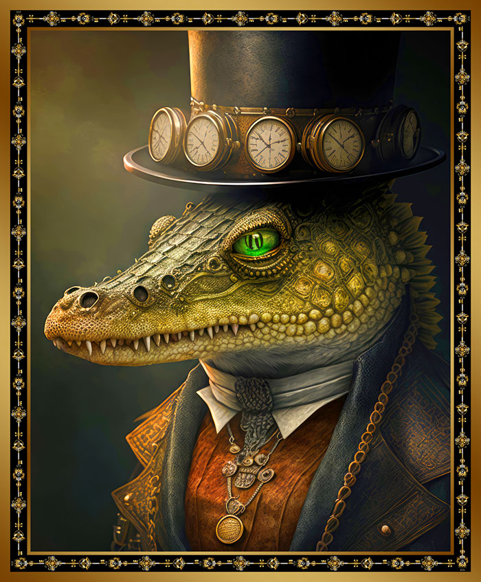 This classy croc is looking dapper in his timepiece top hat and elegant steampunk suit. Digitally printed, 36" panel, 'Steampunk Crocodile Panel' by the Rubin Design Studio, designed exclusively for eQuilter.