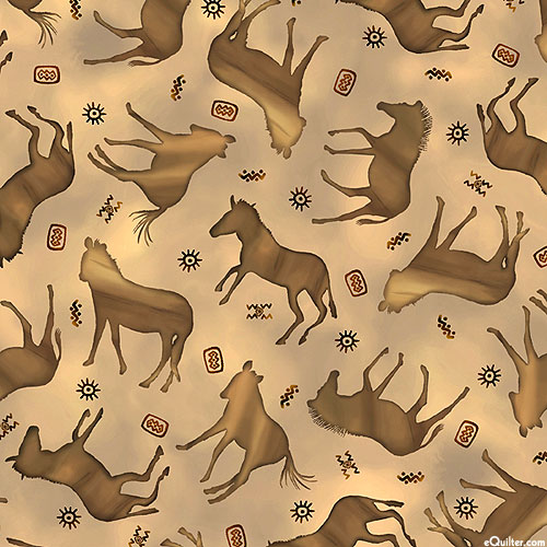 Tribal doodles are mixed between zebra silhouettes colored in striking savanna gradients. Digitally printed, zebras are about 2-1/4", from the 'Zebra Sunset' collection by Carol Cavalaris for Quilting Treasures.