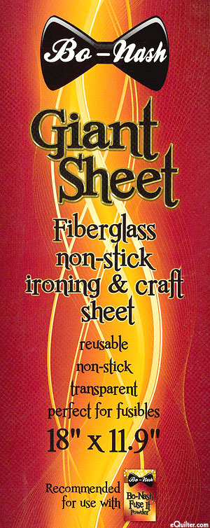 Use this high quality ironing sheet to make all your crafting projects easier, cleaner and quicker! The sheet is made from Teflon coated fiberglass so it is translucent, easy to use, and easy to clean. Tough and durable, the sheet is also double sided and non-stick. It is perfect to use with Angelina and other fusible fibers, or it can be used while crafting or for general ironing as it won't scorch or burn while it protects your iron and ironing board from fusibles and starches. 'Giant Sheet' 11.9" x 18" fiberglass non-stick ironing sheet by Bo-Nash.