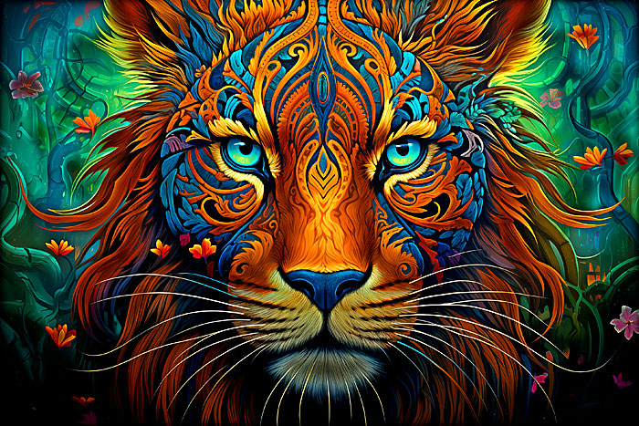 The captivating face of an intricately adorned tiger emerges from delicately illustrated patterns reminiscent of those found in mandalas and zentangle designs. Digitally printed, 29" panel, 'Mysterious Tiger' by the Rubin Design Studio, designed exclusively for eQuilter.