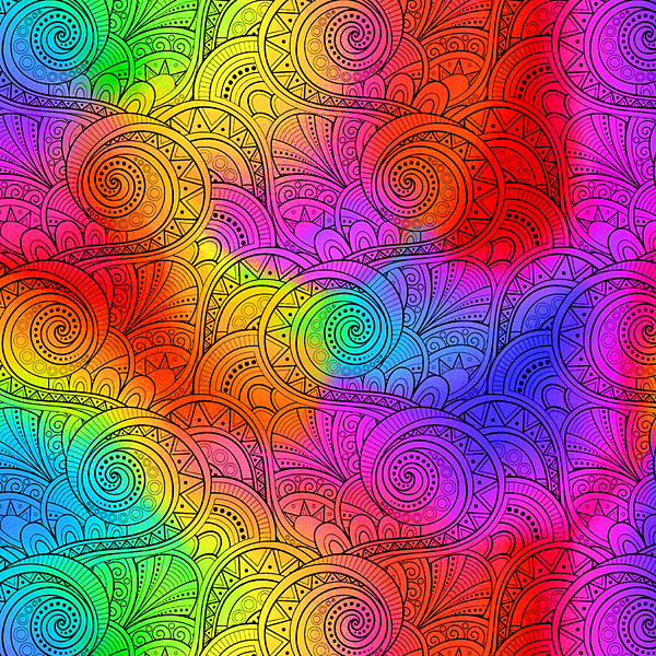 Swirly shapes intricately filigreed like henna tattoos weave a mesmerizing myriad of vividly variegated hues across this picturesque design. Digitally printed, curls are about 1-3/4", 'Ombre Geo Swirl' from the 'Wildcat' collection by Chong-A Hwang for Timeless Treasures.