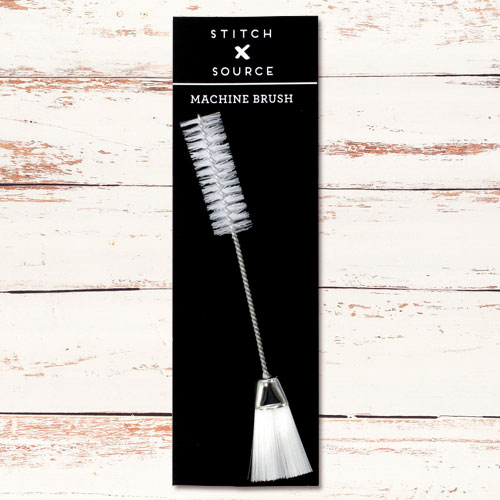 Keep your sewing machines and sergers clean and lint free with this double-ended brush. With two sizes and shapes of brush, you will be able to reach into any tight spot. Spiral brush measures 2", straight brush measures 1-1/2". 6" Double-ended machine brush by Stitch Source.