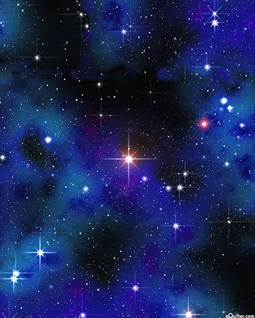 Bright points of starlight pierce through the fog of space, shinning as bright as can be. Digitally printed, larger stars are about 3/16", 'Star Bright' by the Rubin Design Studio, designed exclusively for eQuilter.