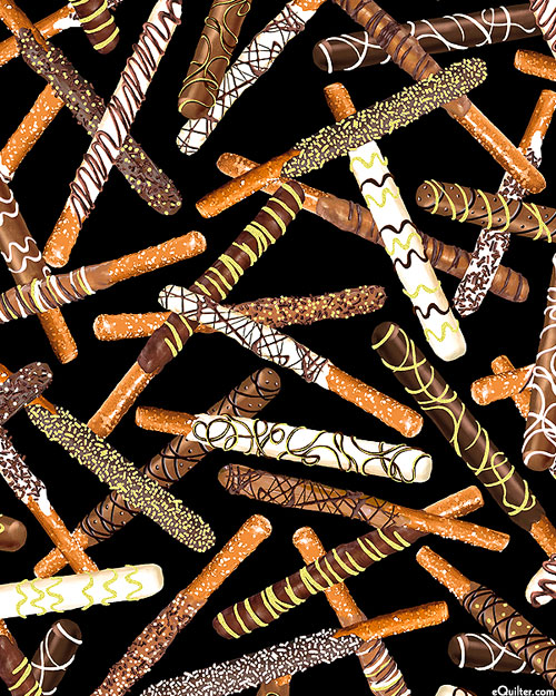 Benartex Fabrics Chocolicious - Chocolate Pretzel Rods - Black