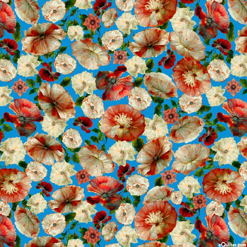 Small blooms are tossed across this elegant floral design. Digitally printed, larger flowers are about 1-1/4", from the 'Floral Embrace' collection by Susan Engler for Quilting Treasures.