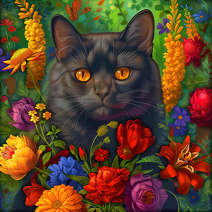 A playful black kitty pokes their head through the verdant foliage of the forest in this cute and cuddly panel. Digitally printed, 43" panel, 'Fabulous Floral Kitty' by the Rubin Design Studio, designed exclusively for eQuilter.
