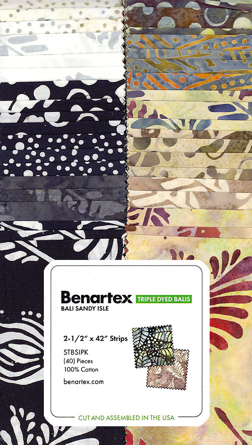 Hand-dyed textures coalesce in a subtle play of depth and color in this marvelous batik pre-cut. 'Bali Sandy Isle' collection strip pack by Benartex Fabrics, pack includes forty 2-1/2" x 42" batik strips.