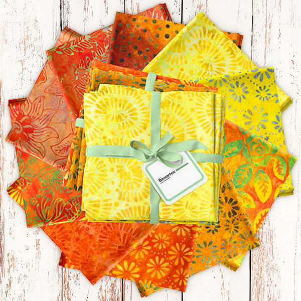 The mottled hues of this unique batik packet are adorned with richly textured hand-dyed designs. 'Bali Blenders Orange/Yellow' collection fat quarter pack by Benartex Fabrics. Pack includes ten batik fat quarters.