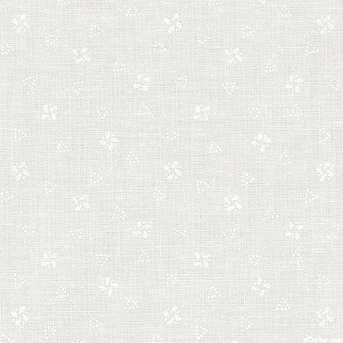 An elegant rain of petal blossoms falls gently across the design. Larger shapes are about 1/4", a true white on white, from the 'Bare Essentials' collection by RJR Fabrics.