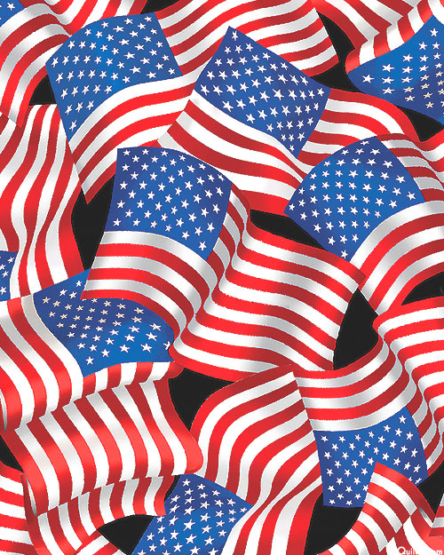 American flags billow in the wind across this proudly patriotic design. Please prewash and allow for up to 7% shrinkage. 108" wide quilt backing, larger flags are about 5", 'Flag Celebration' from the 'Patriotic 108"' collection by Kanvas Studio for Benartex Fabrics.