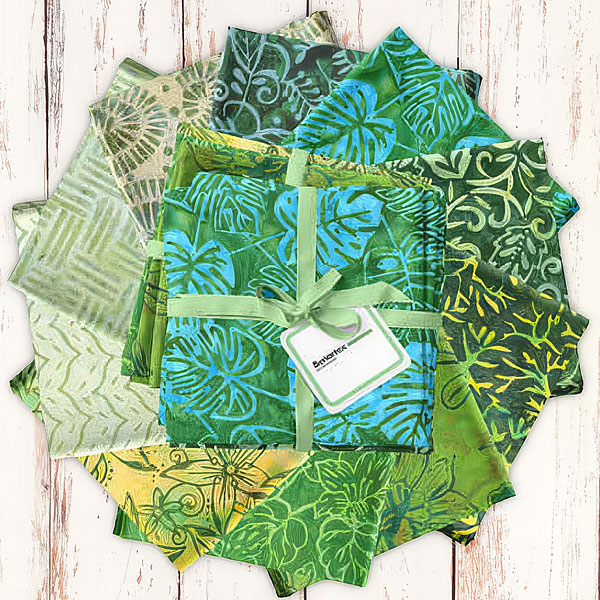 The mottled hues of this unique batik packet are adorned with richly textured hand-dyed designs. 'Bali Blenders Green' collection fat quarter pack by Benartex Fabrics. Pack includes ten batik fat quarters.