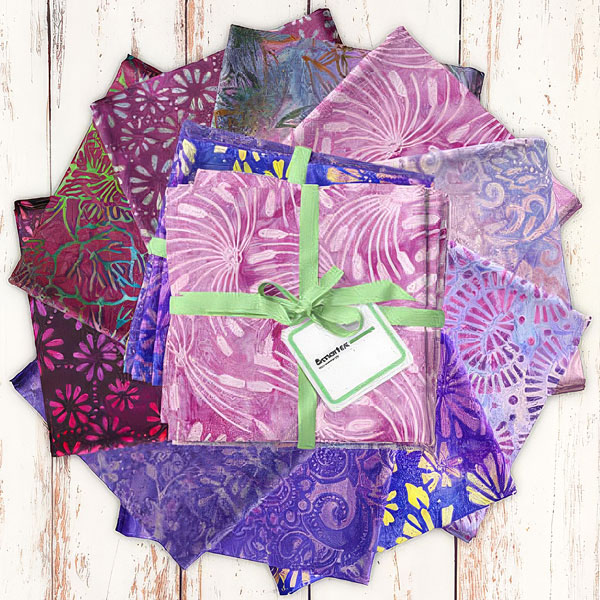 The mottled hues of this unique batik packet are adorned with richly textured hand-dyed designs. 'Bali Blenders Purple' collection fat quarter pack by Benartex Fabrics. Pack includes ten batik fat quarters.