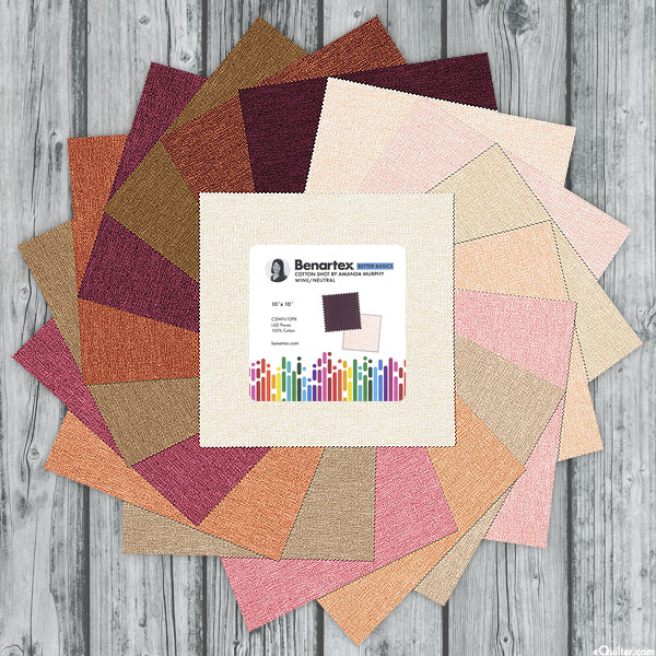 Coming in a variety of soft colors, this pre-cut pack is versatile and can be used in a wide array of projects! 'Cotton Shot - Wine/Neutral' collection ten-square by Amanda Murphy for Benartex Fabrics. Pack includes forty-two 10" x 10" squares.