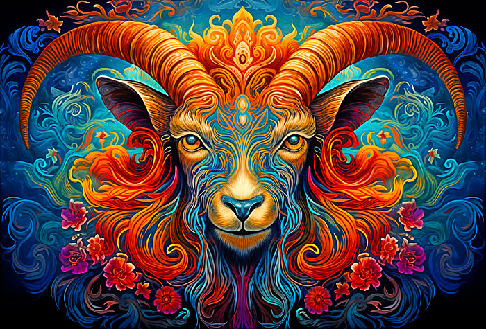 The captivating face of an intricately adorned goat/ram emerges from delicately illustrated patterns reminiscent of those found in mandalas and zentangle designs. Digitally printed, 29" panel, 'Mysterious Goat' by the Rubin Design Studio, designed exclusively for eQuilter.