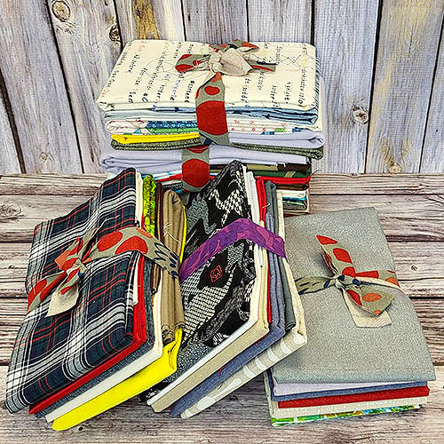 This fun packet is a true grab bag mix of yarn-dyes, linens, midweight prints, and other fashion/home dec weight fabrics (bolt ends) that would be great for small projects like totebags, handbags, vests, pillows, etc.