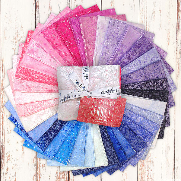 A simple pattern is presented in a variety of vivid colors, making a versatile pre-cut that can be used in a wide array of projects! 'Fairy Frost - Twilight Sky' fat quarter pack by Michael Miller Fabrics. Pack includes thirty-five fat quarters.