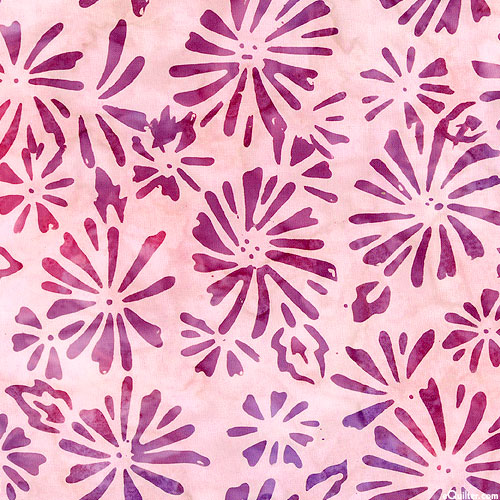 Lush florals blooming in the warmth of the sun are depicted in vivid hues within mottled batik textures. Batik, larger flowers are about 2-1/2", 'Gerber' from the 'Bali Palettes Berries' collection by Benartex Fabrics.