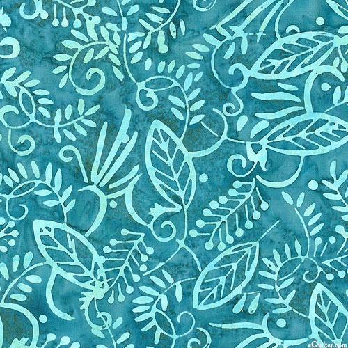 Benartex Fabrics Bali Palettes Rainforest - Leafy Vines Batik - Peacock Blue