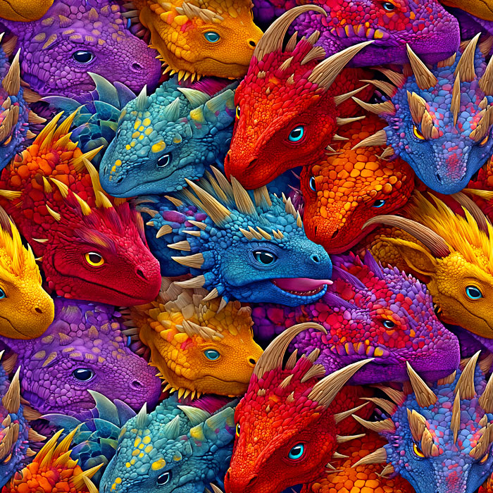 The faces of adorable baby dragons are packed together in this cute fantasy-themed design. Digitally printed, baby dragon heads are about 3", 'Baby Dragon Thunder 2' by the Rubin Design Studio, designed exclusively for eQuilter.
