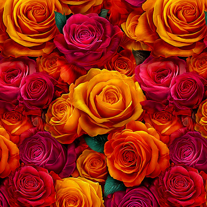 A lush landscape of flourishing florals coalesce to create a captivating garden gala of texture and tone. Digitally printed, larger flowers are about 4", 'Radiant Roses' by the Rubin Design Studio, designed exclusively for eQuilter.