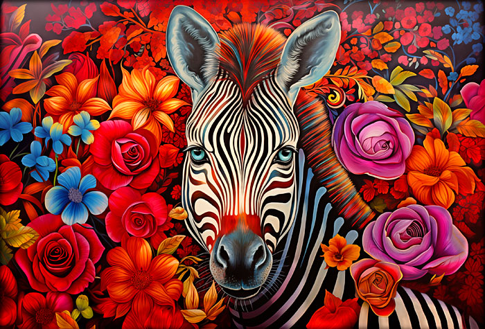 The captivating face of an intricately adorned zebra emerges from delicately illustrated patterns reminiscent of those found in mandalas and zentangle designs. Digitally printed, 29" panel, 'Magic Zebra' by the Rubin Design Studio, designed exclusively for eQuilter.