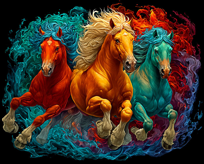 Gallant and mighty, a handsome trio of wild horses comes to life in bright painterly hues across this picturesque panel. Digitally printed, 34" panel, 'Stallion Spirit' by the Rubin Design Studio, designed exclusively for eQuilter.