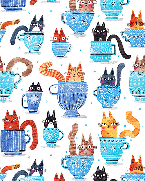 Nestled into their respective tea mugs are an adorable assortment of cute and cuddly kitties. Digitally printed, larger cats in teacups are about 1-1/2", 'Teacup Cats' from the 'Garden Cats' collection by Terry Runyan for Benartex.