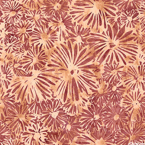 A lush landscape of flourishing garden florals are depicted in vivid hues within mottled batik textures. Batik, larger flowers are about 3-1/2", from the 'Faux Finish' collection by Banyan Batiks for Northcott Fabrics.